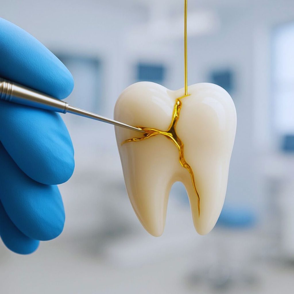 Esse espaço permite a entrada de bactérias, saliva e partículas de alimentos, causando cáries ou a deterioração do dente.